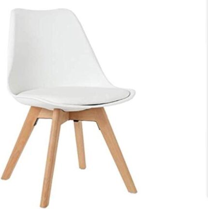 Mid Century Modern Round Eames Table Metal Under Table Base Upholstered Table with Beige Wood Legs for Dining Room Living Room Bedroom Kitchen – White and Beige