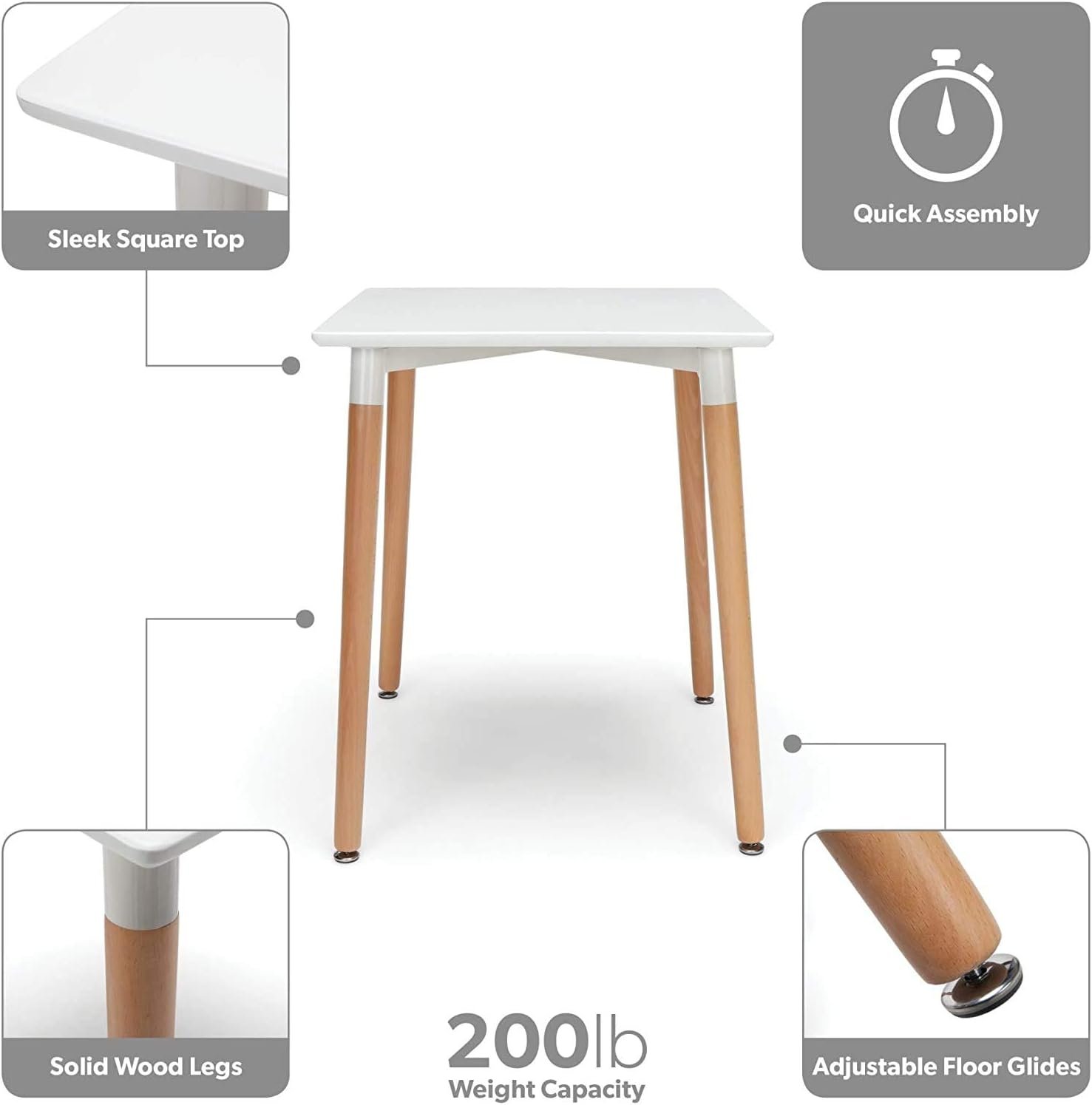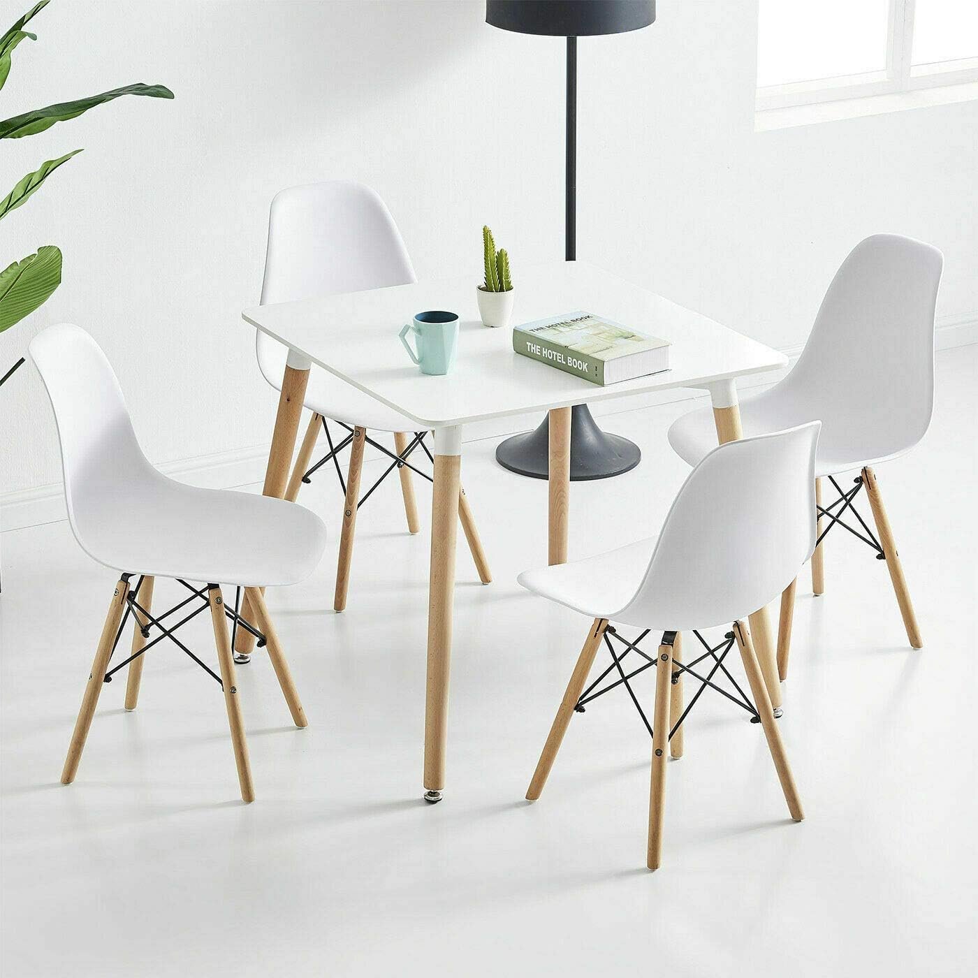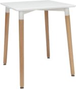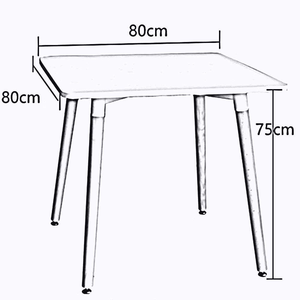 If you are looking to introduce style into your life, then the White Mid-Century Style Dining Square Table with 80cm Length and Width is the perfect solution. This stunning table with its cross style legs and beautiful circular top offers a modern design alternative to your kitchen, dining room or commercial setting. Material: Chairs in polypropylene, with beech wood legs, table in MDF (commercial grade quality) Dimensions (chair): Height 82cm Width 46cm Depth 50cm Seat height 45cm Dimensions (table): Dimensions: Height : 75cm Length : 80cm Width: 80cm