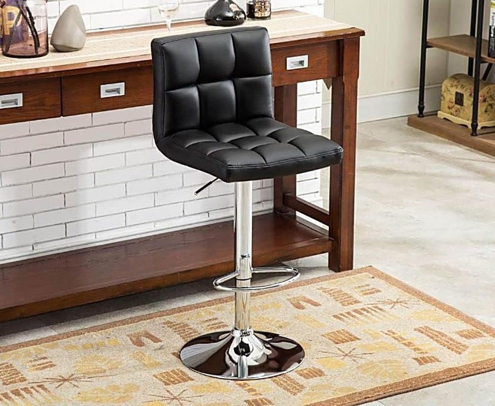 Black Color Extra Cushioned Faux Leather Seating And Metal Base Adjustable Bar Chair Bar Stool