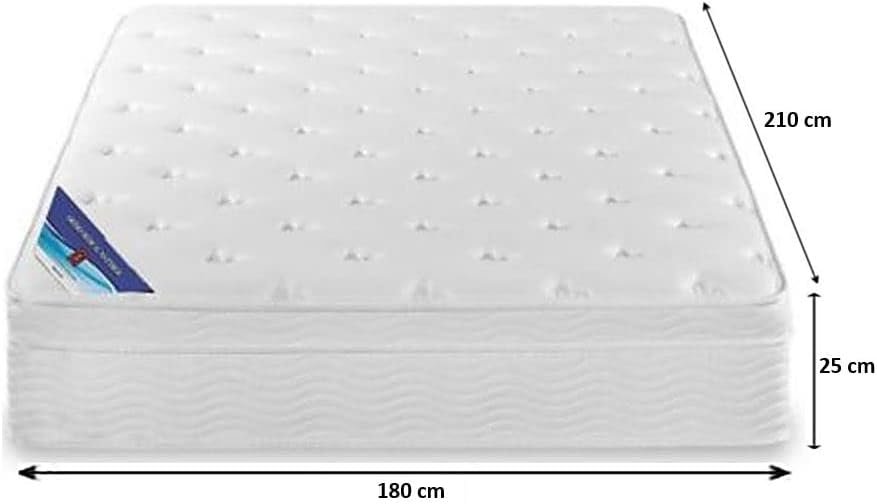 - Mattress Dimensions – 210L x 180W x 25D cm. This Mattress at AWF AL WADI FURNITURE is Available in a variety of sizes and thickness.