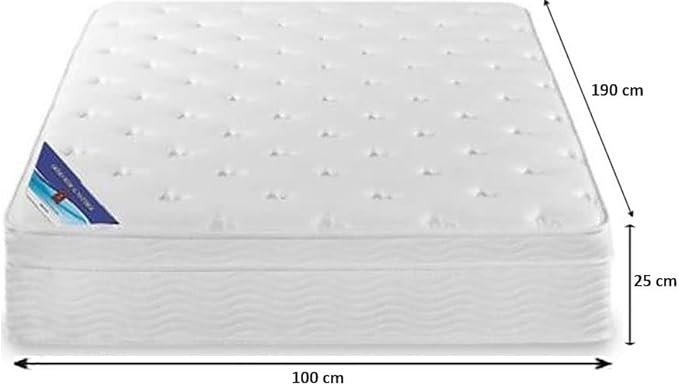 - Mattress Dimensions – 190L x 100W x 25D cm. This Mattress at AWF AL WADI FURNITURE is Available in a variety of sizes and thickness.
