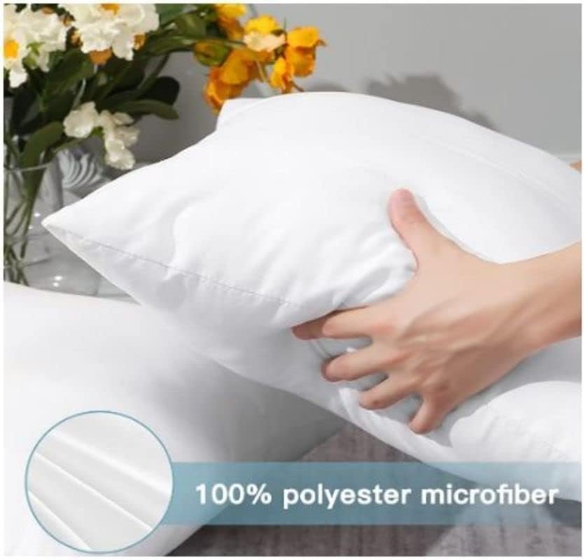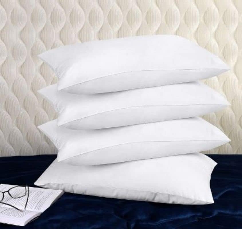 Compressed Set of 4 Microfiber Pillow for Home,Hotel,Office,Guest,Chair,Sofa,Camping, Standard, White, 48W x 70L cm