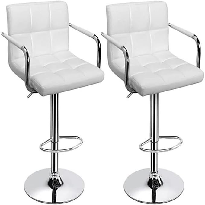 Set of 2 Design Extra Cushioned Bar Stool with 360-Degree Swivel & Adjustable Height, White