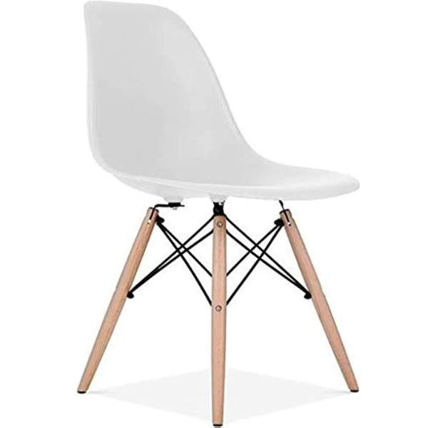 Eames Plastic Dining Chair with Solid Metal Webbing Legs – White