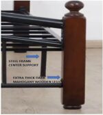 Heavy Duty Single Wooden Steel Crown Bed, Thick Wooden Legs, Twin Center Supports DARK MAHOGANY – 104 X 204 cm