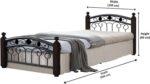 - Decorative and Strong – Solid rubberwood bed posts.Decorative steel bed head. Solid rubberwood bed posts.