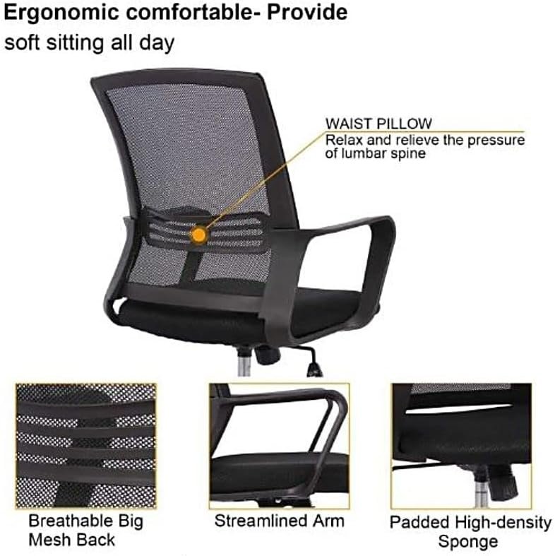 Low Mesh Back Ergonomic Design Desk Office Chair for Home,Executive Chair,Employee Chair,Staff Chair, Fabric Office Executive Chair – Black
