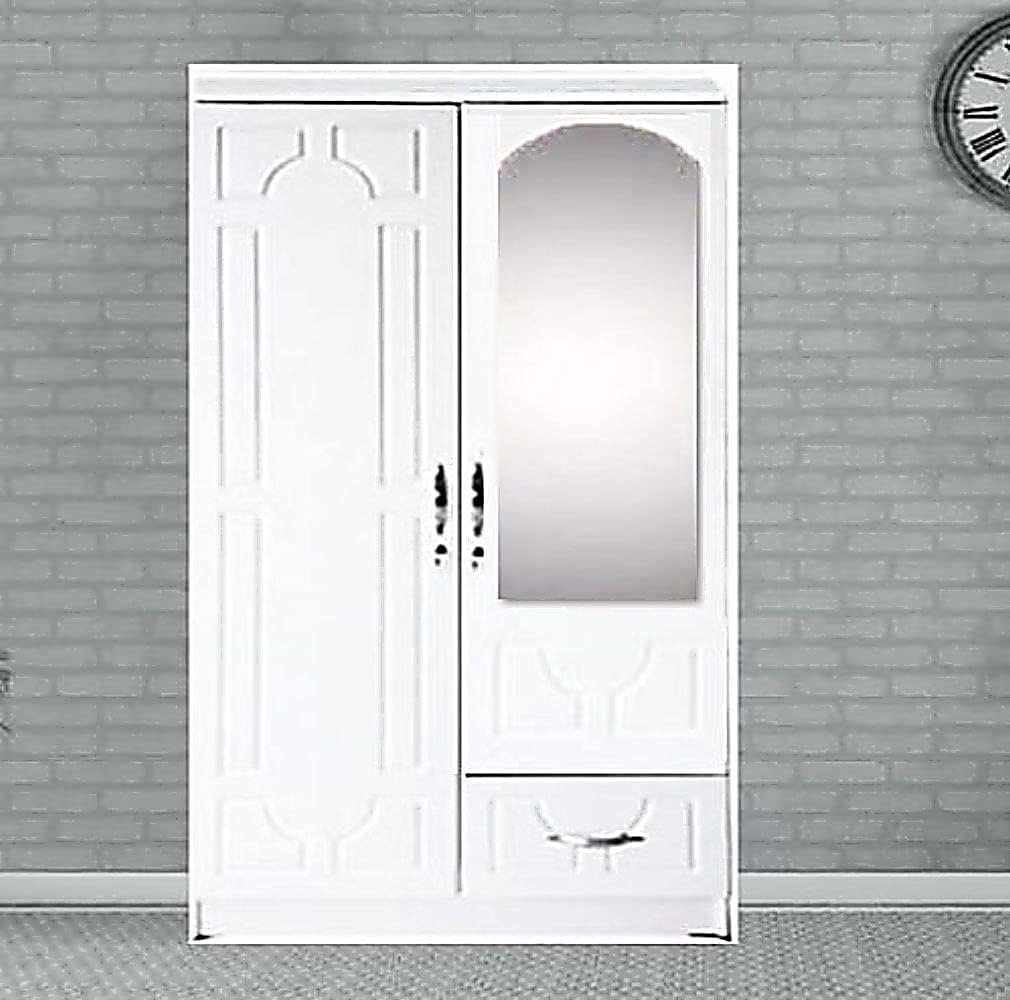 • Comes with One Side Top Hanger for Long Length Clothes Hanging and One Side with 3 Shelves and a Lower Drawer. Doors are Lockable for additional personalisation and keeping valuables secured. There is an interior Fixed Mirror inside the left door of the cabinet for additional add-on benefit of the cabinet.