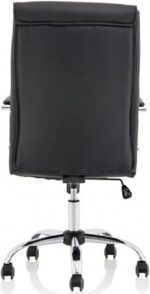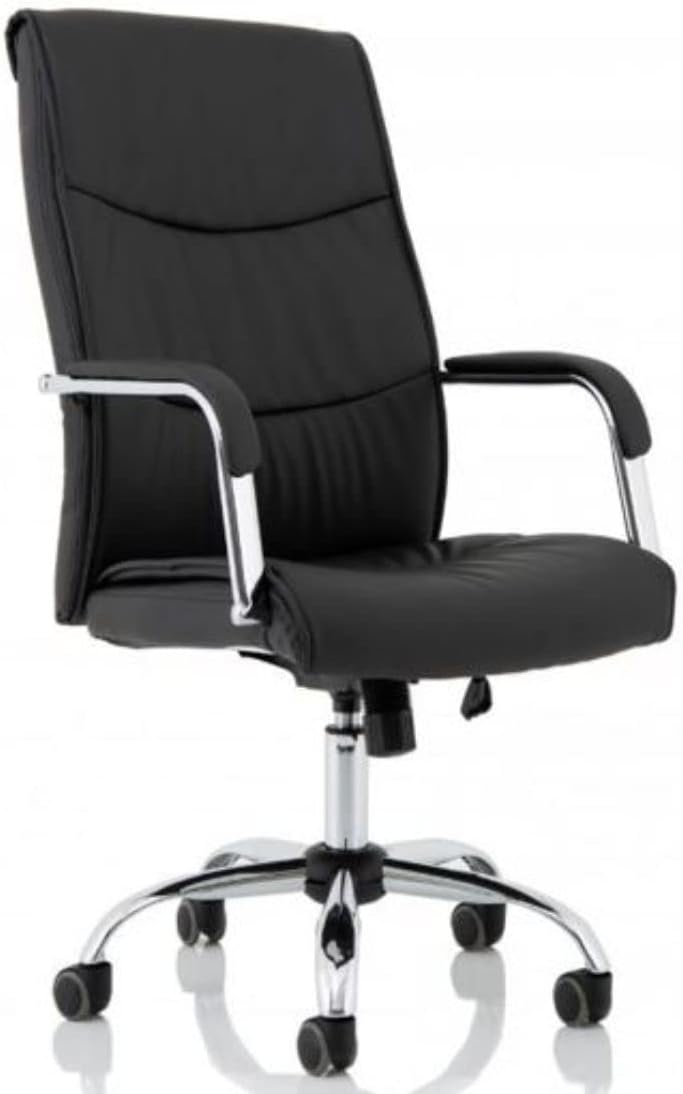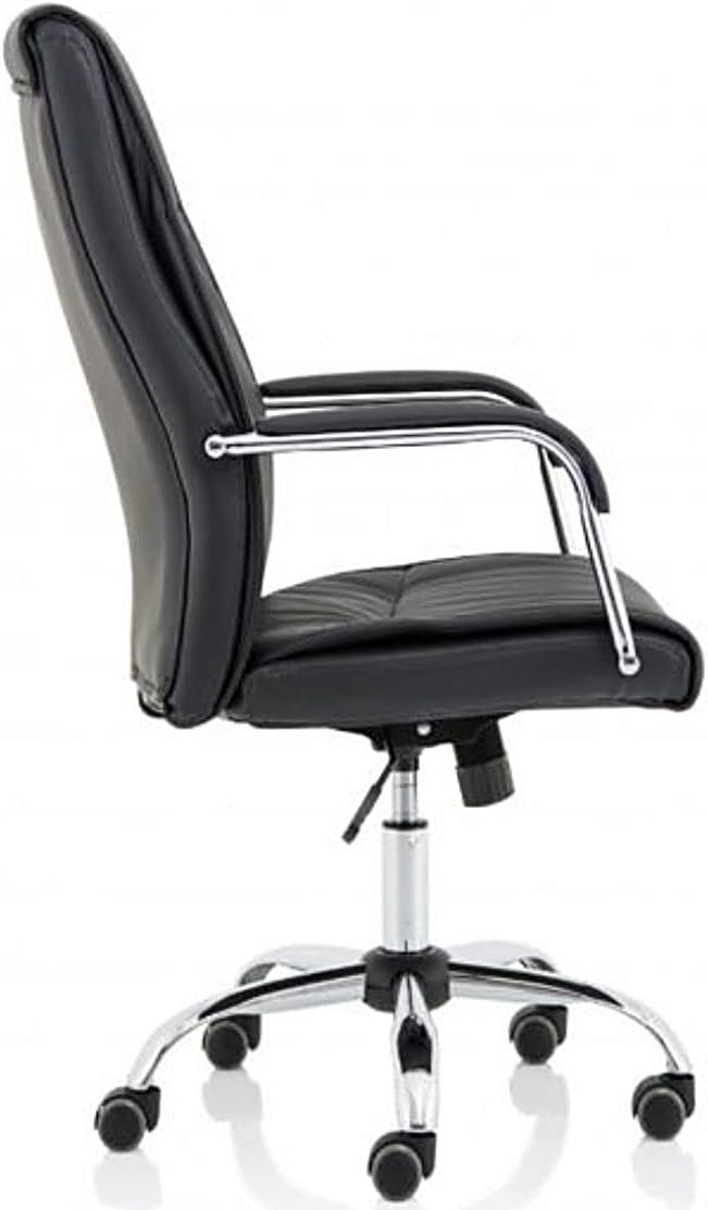 - SUPERIOR QUALITY MATERIAL】 Strong frame is designed to support your back always in correct seating way, protecting your back and waist. Selected mesh fabric reduces heat buildup and makes make you sit with good ventilation. The heavy-duty chrome base with noiseless nylon silk, casters ensures stability and mobility. Upholstered back and seat, plus padded arms, in black PU leather for all day comfort.