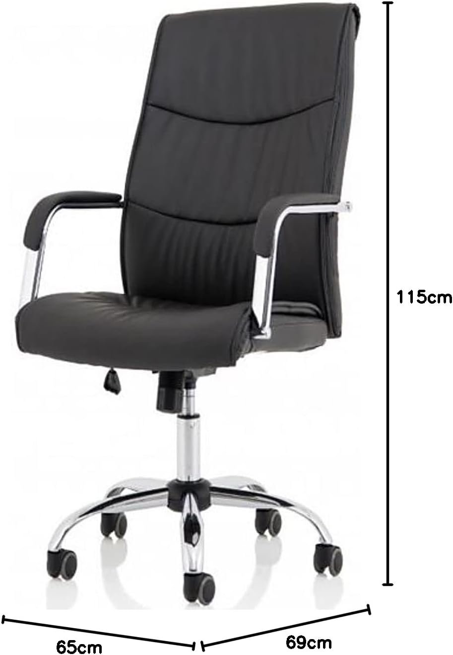 The AWF AL WADI FURNITURE is our high back executive leather office chair. It features black faux leather upholstery, stylish chrome base, fixed chrome framed armrests with black sleeve covers, stitching detail and a single lever to operate the tilting and locking mechanism.