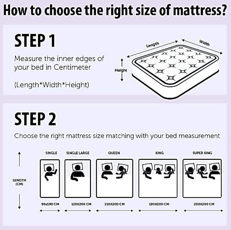 - Mattress Size : 190L x 150W x 26D cm. The Mattress at AWF AL WADI FURNITURE is Available in a variety of sizes and thickness. The 26 cm depth includes several different layers for support and comfort. Layers are comprised of both high-density foam and pressure-relieving comfort foam.