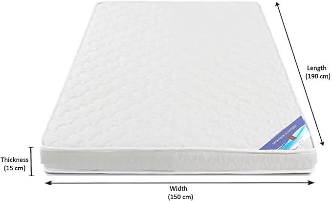 - Comfort Sleep – Quality sleep is essential, and we strive to ensure it is, at all times with our Ortho-medicated mattresses Made in UAE. Depending on the type of medical mattress you need, we have varied mattress types and sizes available at your convenience. Dimensions : 190cm Length, 150cm Width, 15cm Thickness.Keeps your spine to stay in a neutral position, relaxing your muscles and reducing morning aches and pains.