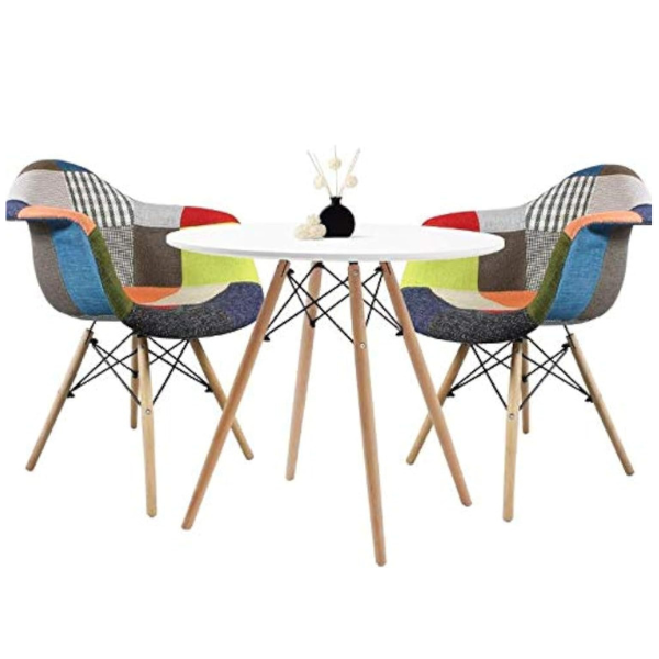 • ntroducing a wide range of Eames Dining Sets and Chairs from AWF AL WADI FURNITURE Home and Furniture Collection. 1 Piece Dining Table and 2 Chairs Set: includes 1 white wood dining table and set of 2 patchwork kitchen chairs, retro dining chairs and modern dining table matching for any home decoration and any small space