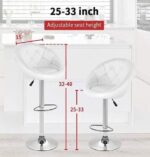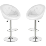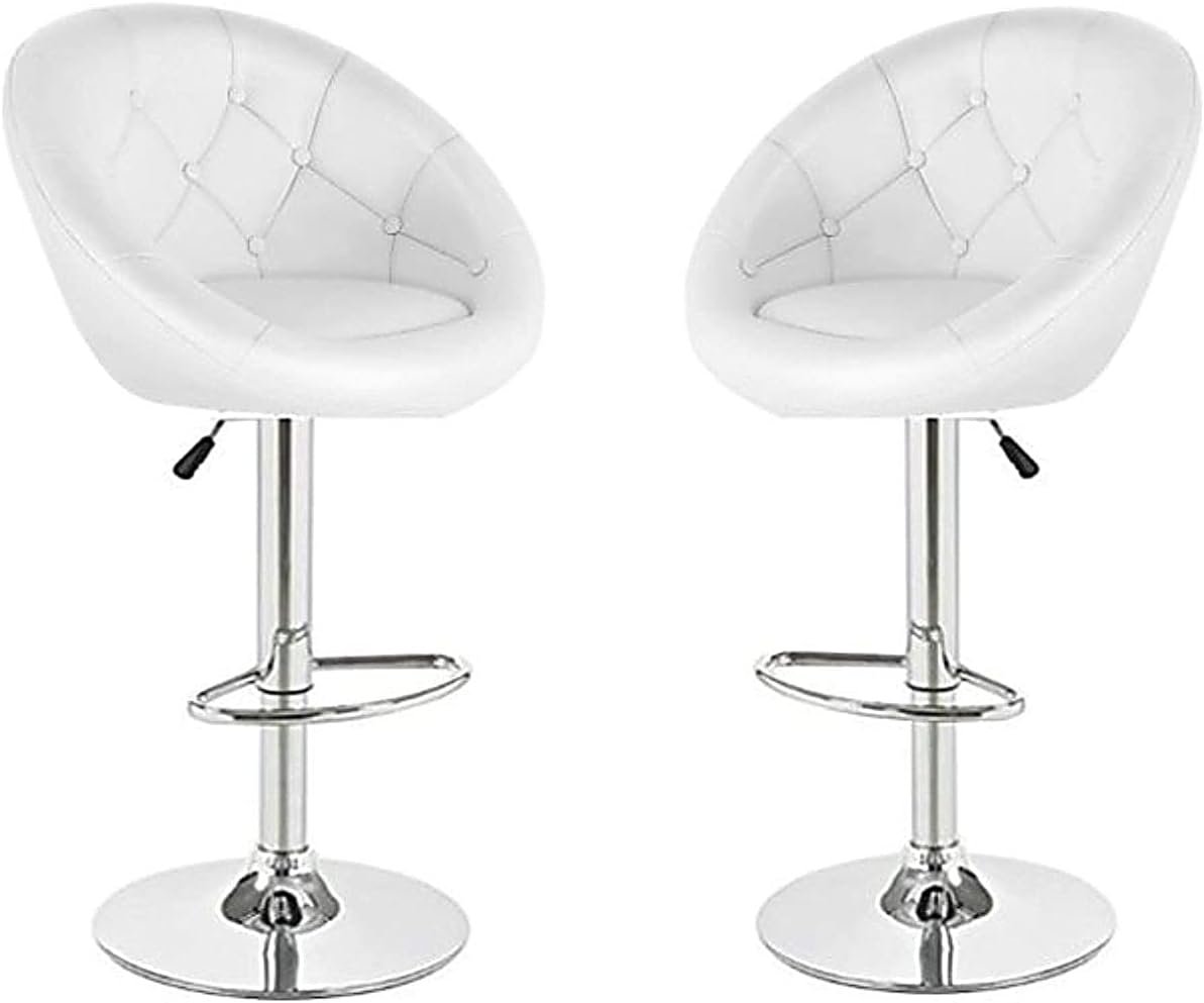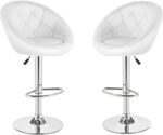 Set of 2 Adjustable Modern Swivel Bar Chairs Round Tufted Back Accent Chairs PU Leather Black Home Office,Kitchen Chairs, WHITE