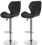 Set of 2 Diamond Style PU Leather Extra Wide Comfortable Cushioned Adjustable Bar Stool with Footrest High Chair for Kitchen,Bar Counter,Office Chair, Black