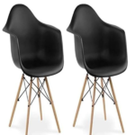 Set of 2 Eames Big Daw Plastic Dining Chair with Solid Metal Webbing Legs – Black