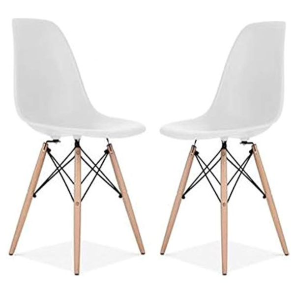 Set of 2 Eames Plastic Dining Chairs with Solid Metal Webbing Legs – White