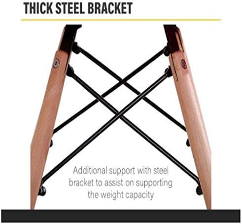 - The legs are made from solid wood to contrast the plastic seat for a warmer, classic look, while the artful crossbeams are made from sturdy steel