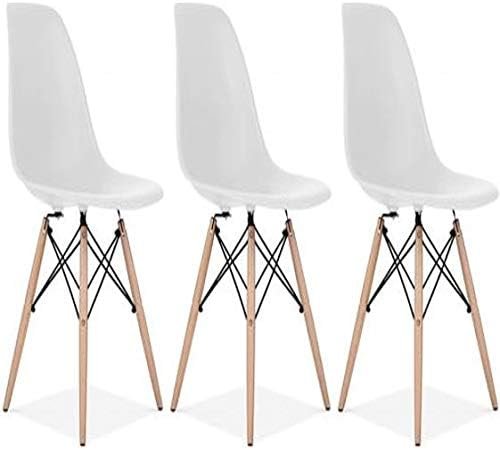 Set of 3 Eames Plastic Dining Chair with Solid Metal Webbing Legs – White