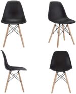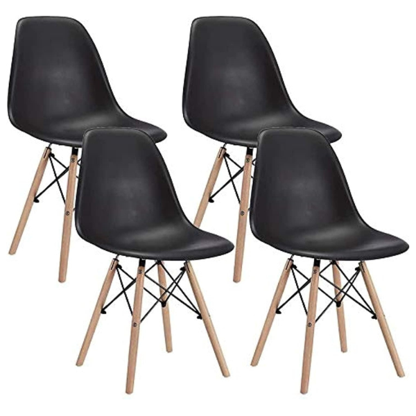 Set of 4 Eames Plastic Dining Chair with Solid Metal Webbing Legs – Black