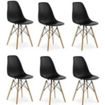 Set of 6 Eames Plastic Dining Chair with Solid Metal Webbing Legs – Black