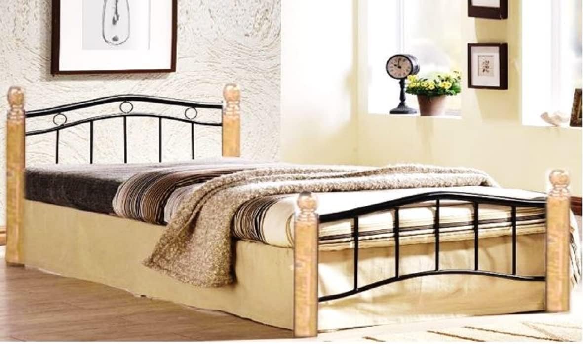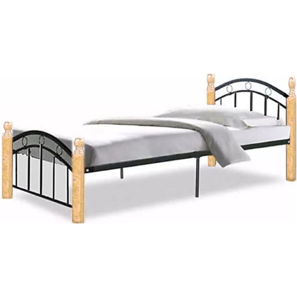 - Decorative and Strong – Solid rubberwood bed posts.Decorative steel bed head. Solid rubberwood bed posts.