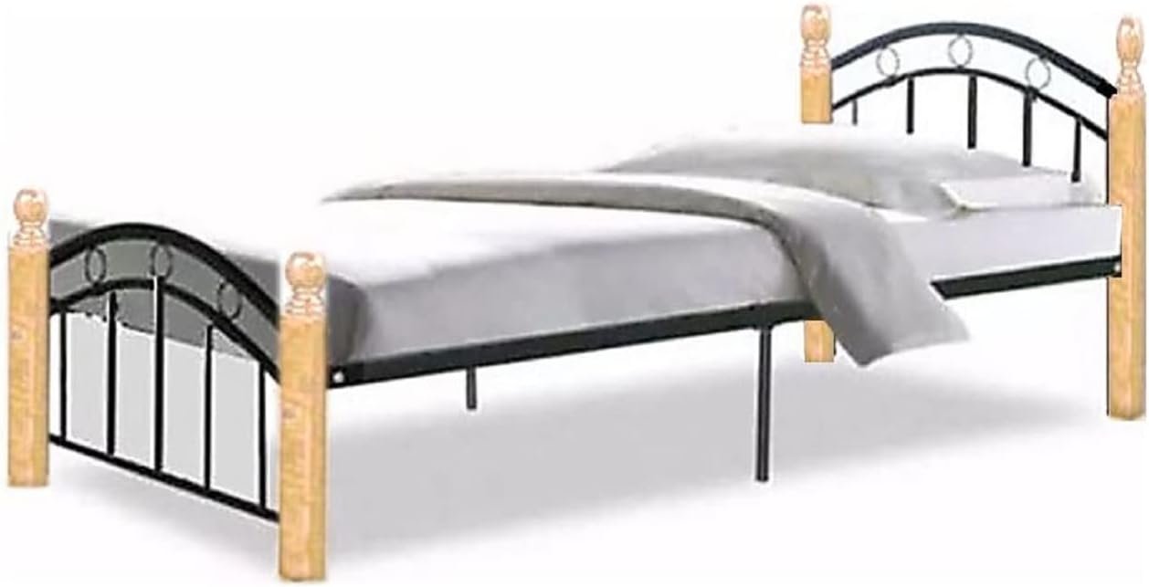 Steel and Wood Single Bed Oak Beech with Metal Slat Base and Twin Frame Center Supports – 100 x 200cm