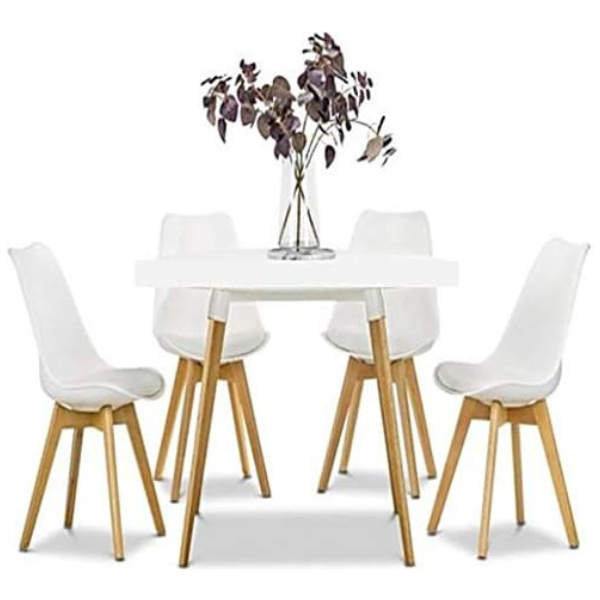 White Dining Table and Chairs Set 4 Modern Square Dinner Table Chairs with Beech Legs for Dining Room Kitchen Office Lounge