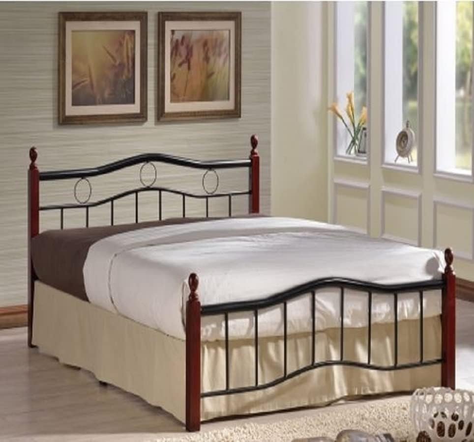 A lovely addition to your home, this bed brings style and elegance to your bedroom space. With its wooden posts in a sleek shiny Beech Natural finish, circular ball finials tastefully adorn the tops of the headboard and footboard posts. This elegant two-tone bed will pair with a number of room styles and with supportive two adjoining metal slat system. Also Available in Oak Brown Mahogany Color Posts Finish and with Mattress Option (See Below Options Chart)
