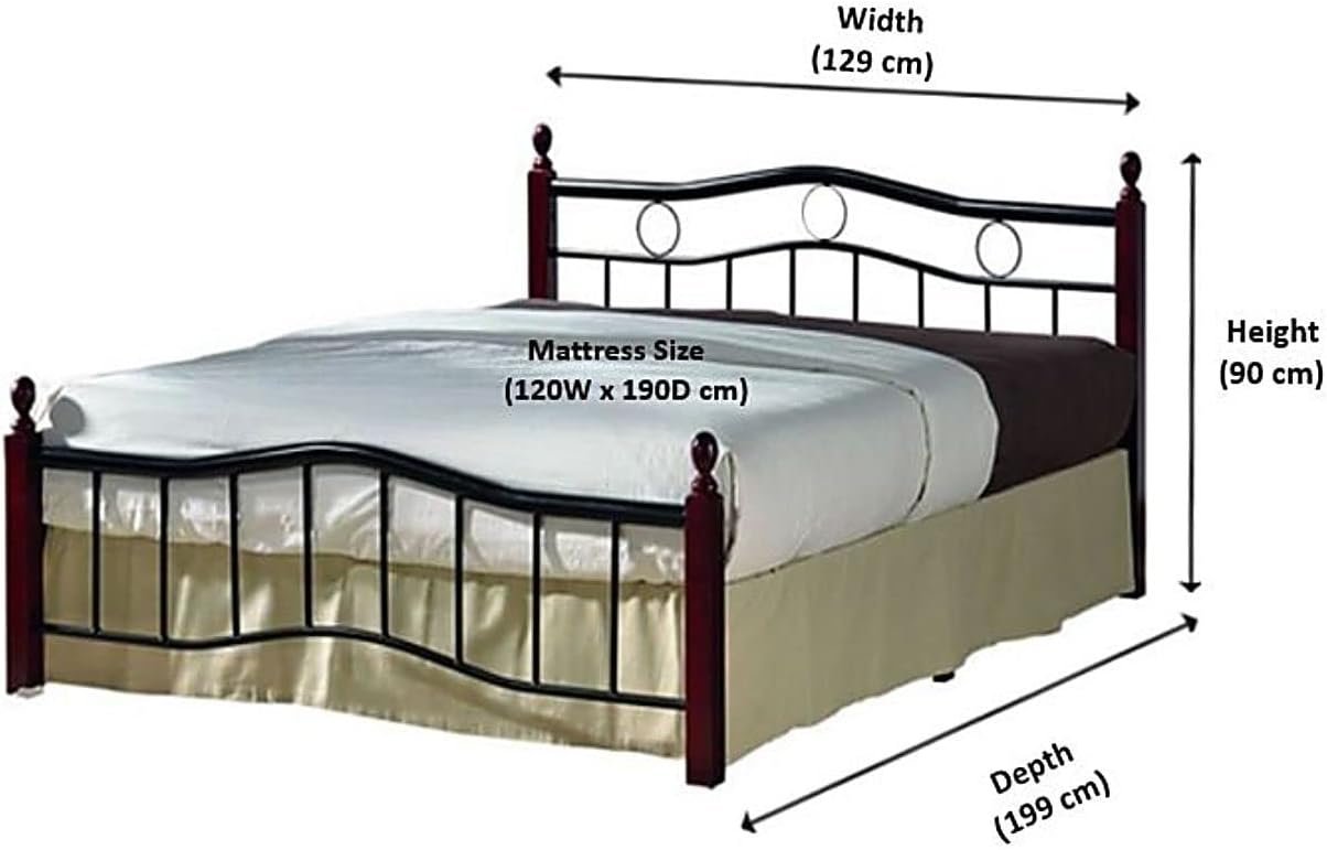 - Decorative and Strong – Solid rubberwood bed posts.Decorative steel bed head. Solid rubberwood bed posts.