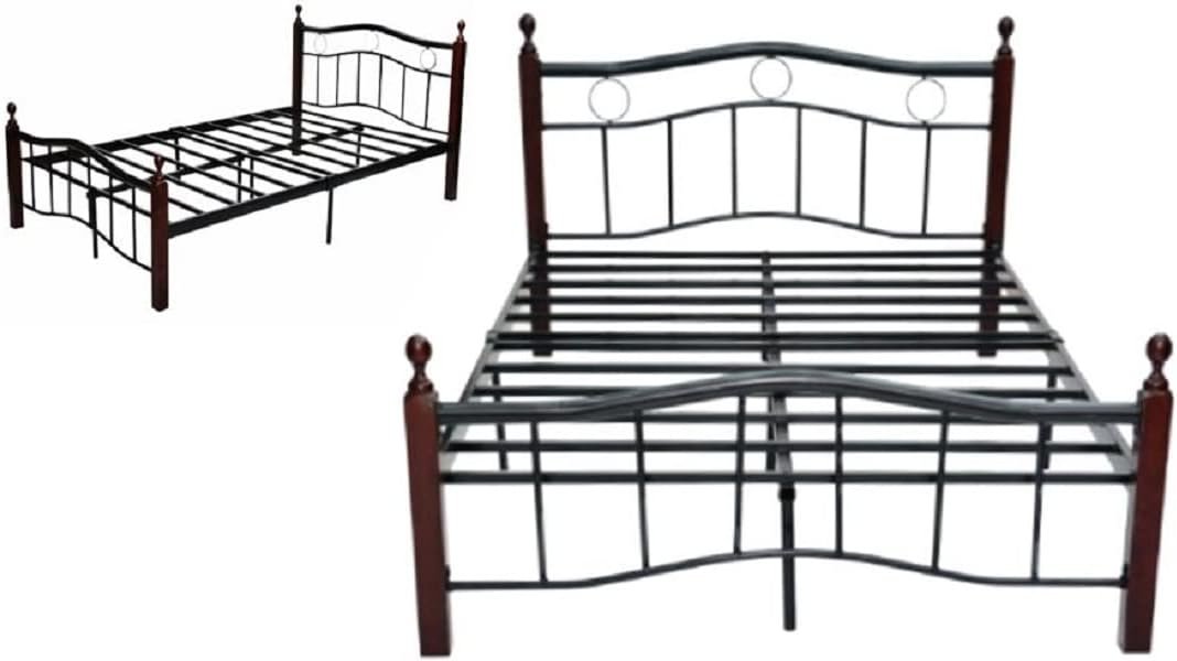 AWF AL WADI FURNITURE Wooden and Steel Bed with Metal Slat Base and Medicated Mattress