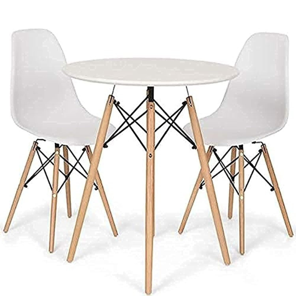 Be the first to review “1 Round Table + 2 Chairs Wood Dining Set – White” Cancel reply