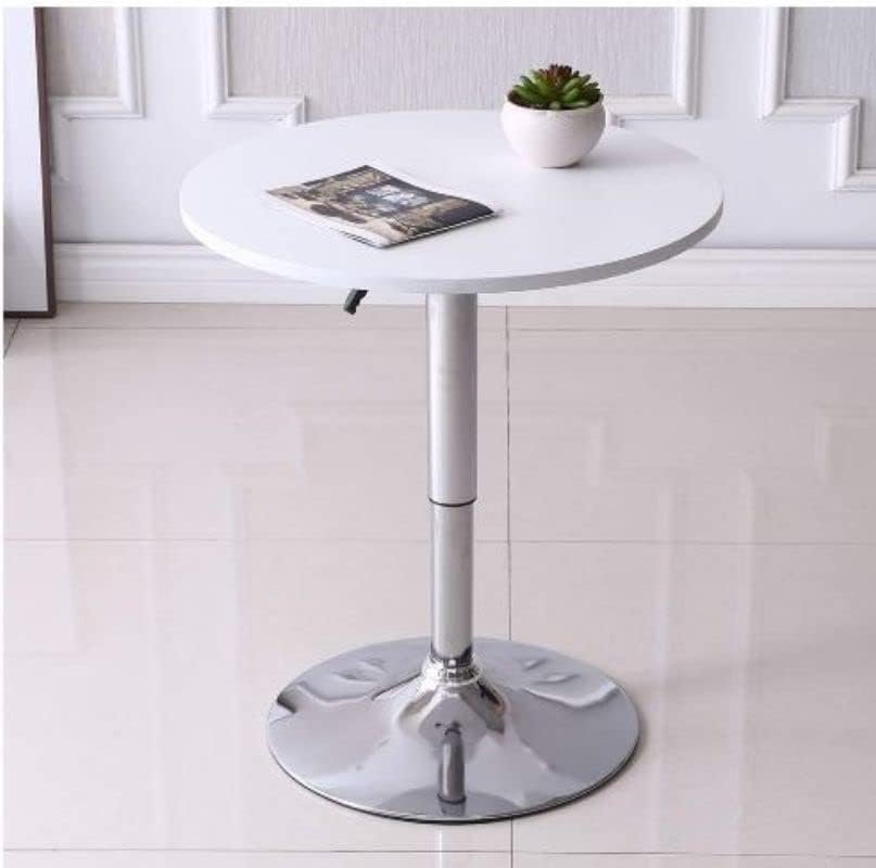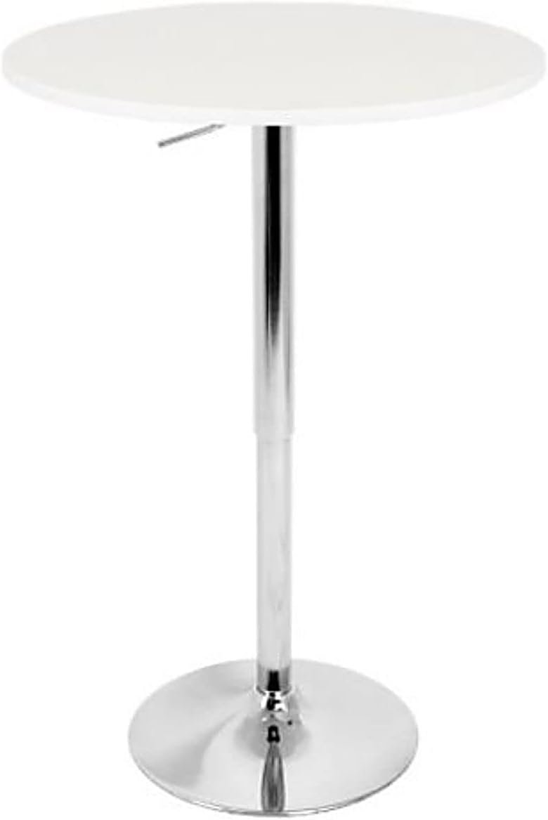 - 【Stylish and Compact Bar Table】- This Bar Table is a great fit for indoor or outdoor events with its white covered top. It can swivel 360 degrees to provide space for everybody and the hydraulic lift can raise or lower the height. Our Bar Table is made of MDF board and Mirror-polish chrome base is highly durable. The wide base makes it almost impossible to tip over and the steel frame is highly durable.