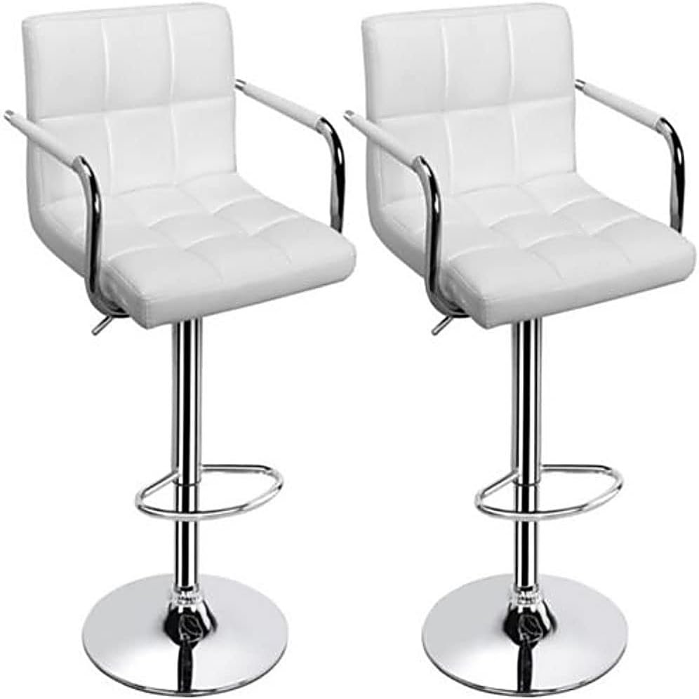 - 【3 Pieces Pub Table Set】- Bar table and chairs set sold as a complete set which includes 1 Square White bar table and 2 White Bar Stools with Arms. Simple and modern design that perfectly blends in with any type of home décor