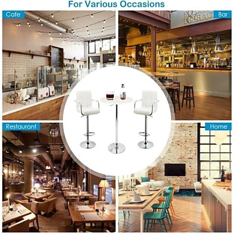 3-Piece Adjustable Round MDF Wood Bar Table Set with 2 Bar Stools for Pub Counter Kitchen Home PU Leather Bar Chairs with Arms Footrest 360?Swivel Perfect for Small Space, White