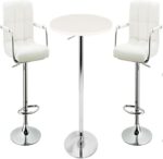 Stylish and Contemporary 3-Piece Adjustable Swivel Bar Table with Two PU Leather Bar Chairs With Arms – WHITE