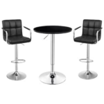 3-Piece Adjustable Swivel Bar Table with Two PU Leather Bar Chairs With Arm rests – BLACK