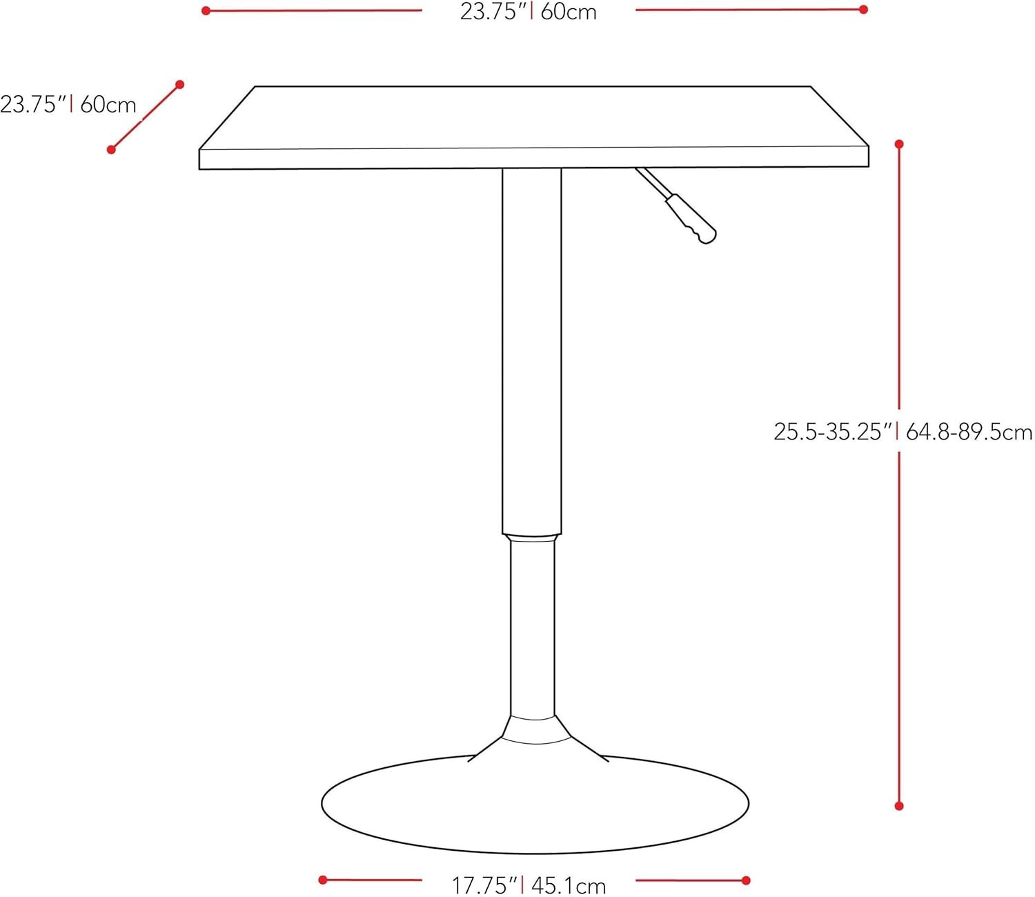 Adjustable Up and Down Bar TableThis bar table uses polished steel for the frame with a large round base, which not only ensures it keeps steady and balanced, but gives it an overall beautiful and sleek look.The side pneumatic handle adjusts the height from easily and safely. Lightweight and compact design realizes easy movement from room to room. |