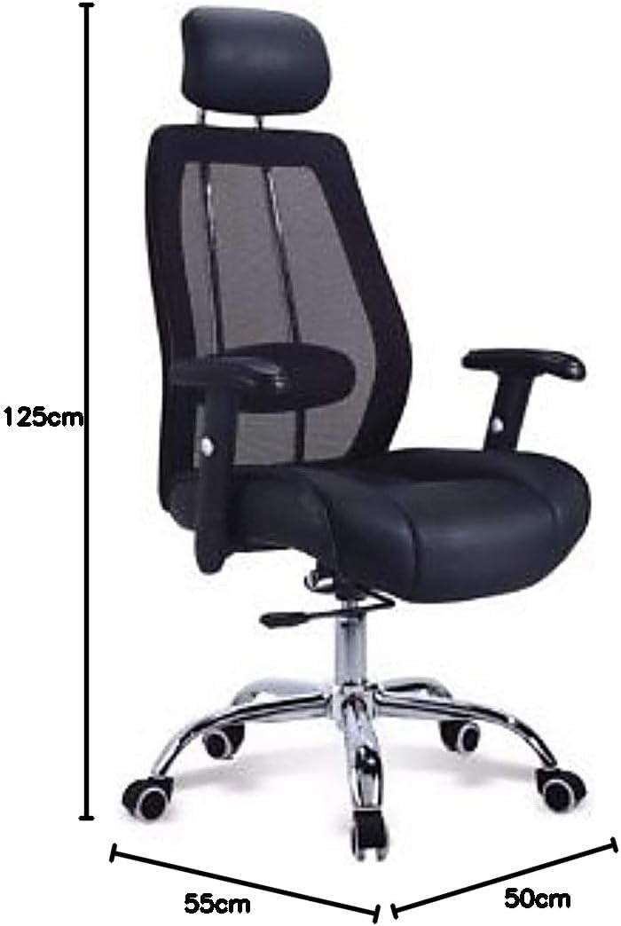 Black style soft and comfortable office chair 360 Degree Swivel High back manager chair Fixed Cushion Headrest Adjustable Armrest MeshBack PU Leather Soft Large Seat
