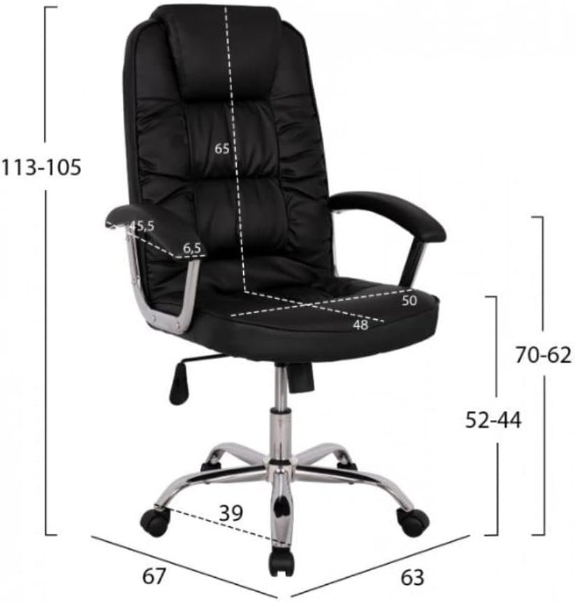 - Stylish Executive Boss Chair – Strong frame is designed to support your back always in correct seating way, protecting your back and waist. Selected fabric reduces heat build-up and makes make you sit with good ventilation. The heavy-duty base with noiseless Leather & Foam, casters ensures stability and mobility. Upholstered back and seat, plus padded arms, in PU leather for all day comfort. Office chair has a Heavy-Duty metal base, great stability & Mobility.