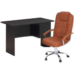 This AWF AL WADI FURNITURE is an Ideal Office Set for for small rooms or limited spaces, it has plenty of storage space and doesn’t take up much room. It’s an excellent choice for you to work in your office room or for your children to study as a writing desk in your family. The spacious tabletop of this computer desk can provide enough workspace. The open design makes cable management easy for you to arrange your laptop, host, and monitor.It also comes with Lockable Top Drawer. The seat and backrest of the executive chair is made of high-density sponge with good air permeability and high quality leather. The PU Leather Padded designed armrest adds to the comfort and allows for seating for long time.