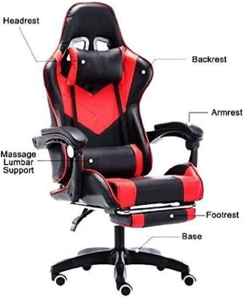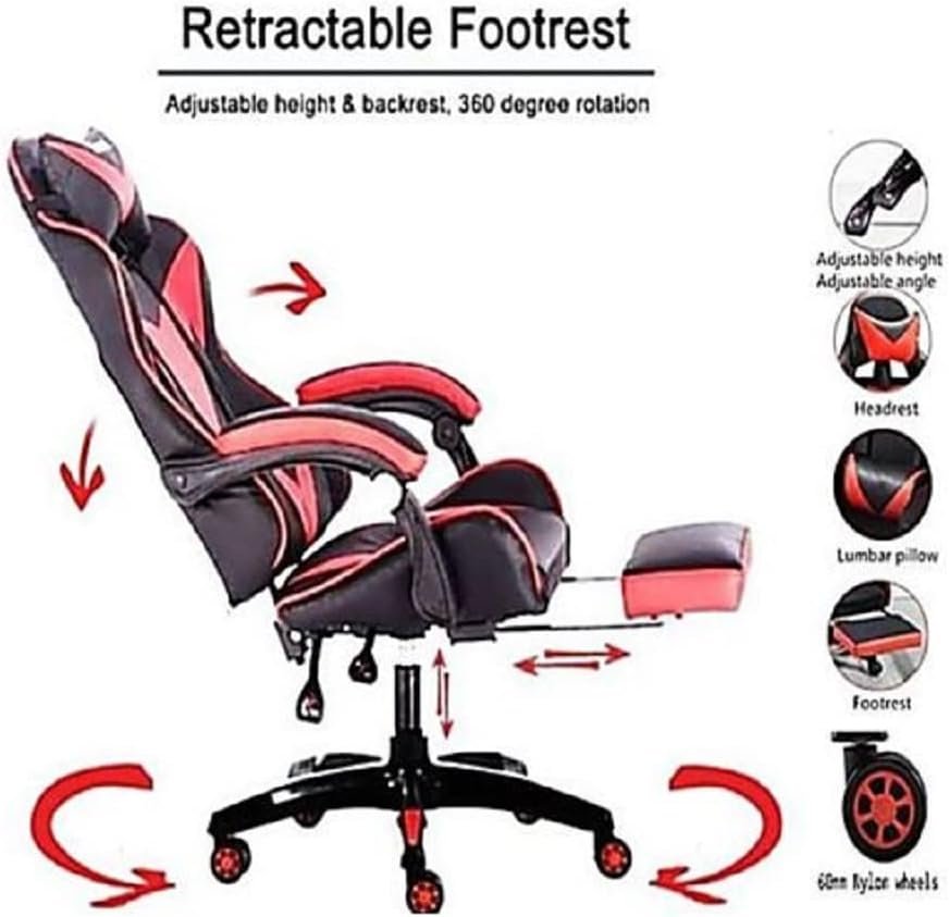 Gaming Chair,Big Size,Faux Leather Gaming Chair Heavyweight With Footrest,Ergonomic Gaming Chair,Comfortable,Head support,Lumbar Support,Black And Red