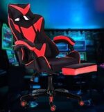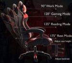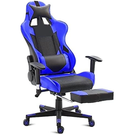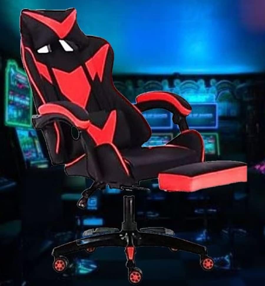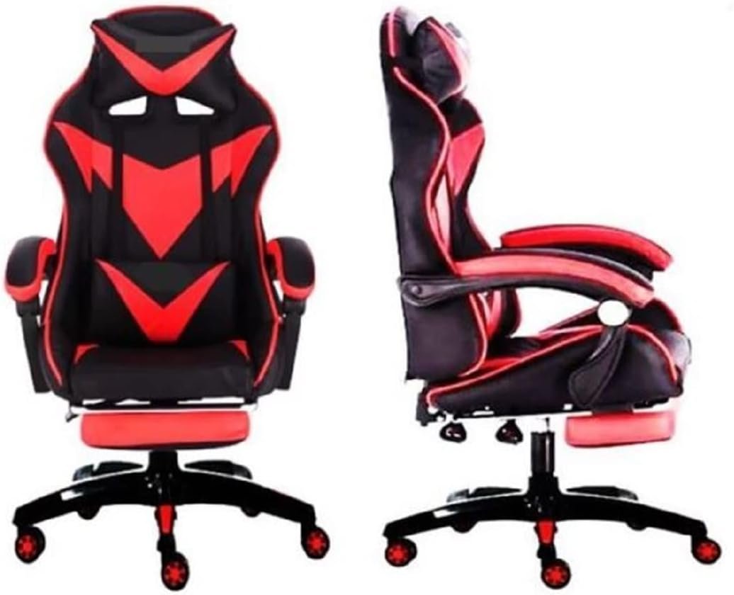 This gaming chair is wrapped in black and Red leatherette and carbon-fiber in a sleek, race-inspired shape, providing immersive gaming experience. It also Includes Headrest pillow and lumbar Cushion that can be removed or adjusted to fit to your body shape.