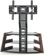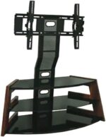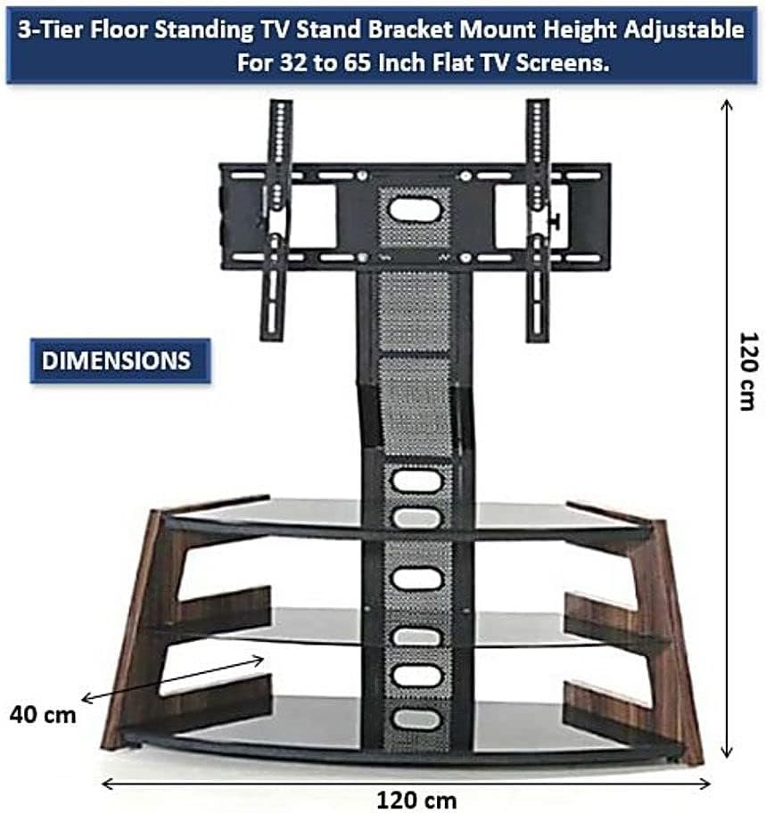 Be the first to review “Height Adjustable Curvy 3-Tier Tempered Glass Steel TV Mount Stand with Wooden Frame, Oak Brown, 120H x 120W x 40D cm”