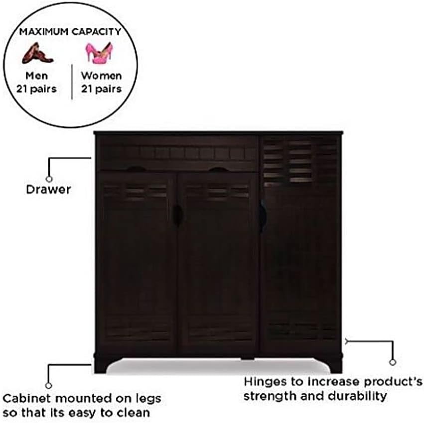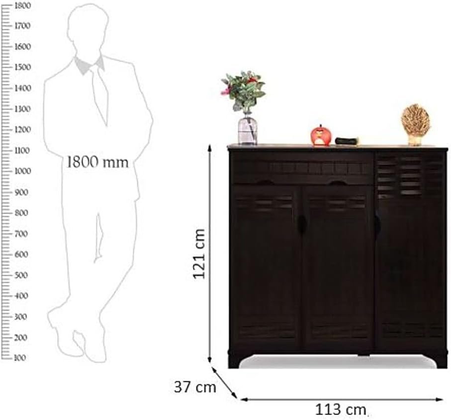 This AWF AL WADI FURNITURE Wooden Shoes Cabinet/Rack with its huge space inside allows you to store all children’s shoes, children, ladies, men, like hiking, winter running shoes, high-heeled sneakers, ballet shoes, sports shoes, business shoes, Oxford derby shoes, jelly shoes, loafers, slippers, sandals Pumps-shoes flip flops.A Modern yet stylish Design and a perfect way to style any place or area you want; this stylish wooden storage organizer is made for people who appreciate modern design.Tuck away your shoes neatly and in an organised manner with the help of this shoe cabinet. This spacious shoe cabinet has 3 doors to keep your shoes safe inside.It also has a Top Drawer to store those small yet valuable household items always in reach of you.Wipe clean the durable unit for its care.