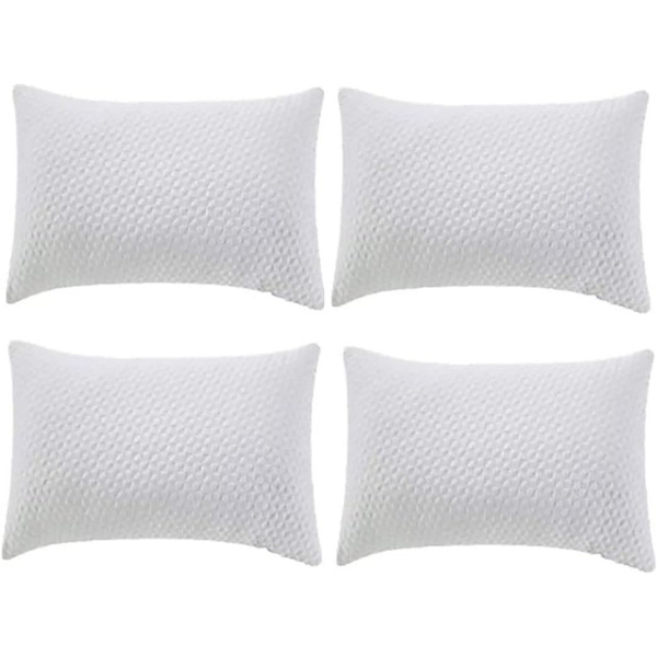 Premium Shredded Memory Foam Pillows-Hypoallergenic-Moldable Loft for Side and Back Sleepers in Washable Visco Cover,Pack of 4, White, 46W x 72L cm