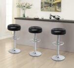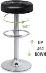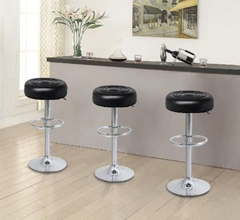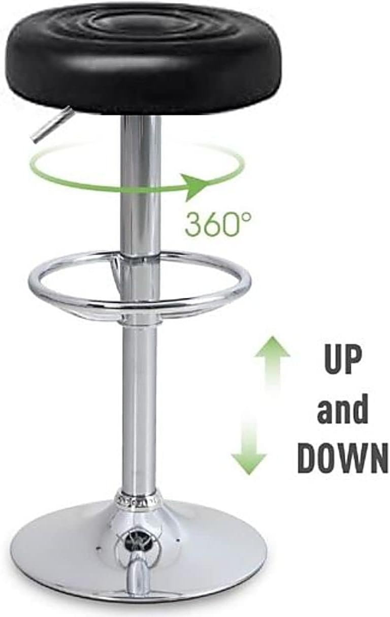 The Adjustable Height Swivel Bar Stools Set by AWF AL WADI FURNITURE with Cushion lends a cool retro vibe to any game room, basement, bar, kitchen, or shop. The bar stools has a design reminiscent of the days of diners and drive-ins and features a mirror-like polished chrome base, large padded PU Leather 360 degree swivel seat, a built-in footrest, and adjustable seat height.