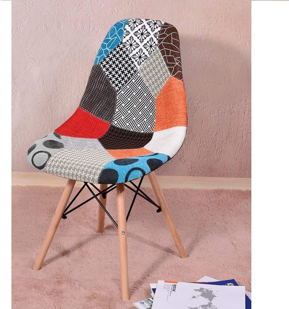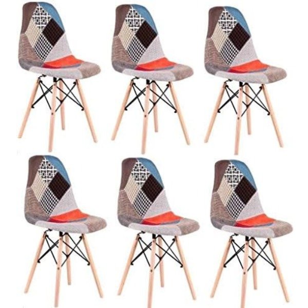 Set of 6 chairs Multicolor Patchwork Chairs in Linen Fabric, Leisure Living Room Chairs Dining Chairs with Soft Cushion Backrest