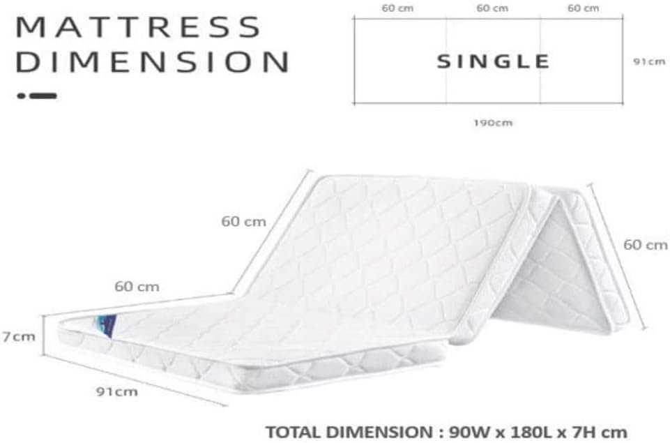 - SET DIMENSIONS : FOLDABLE MEDICATED MATTRESS – Length 180 cm, Width 90 cm, Height 7 cm MICRO FIBER PILLOW – Length 70 cm, Width 48 cm