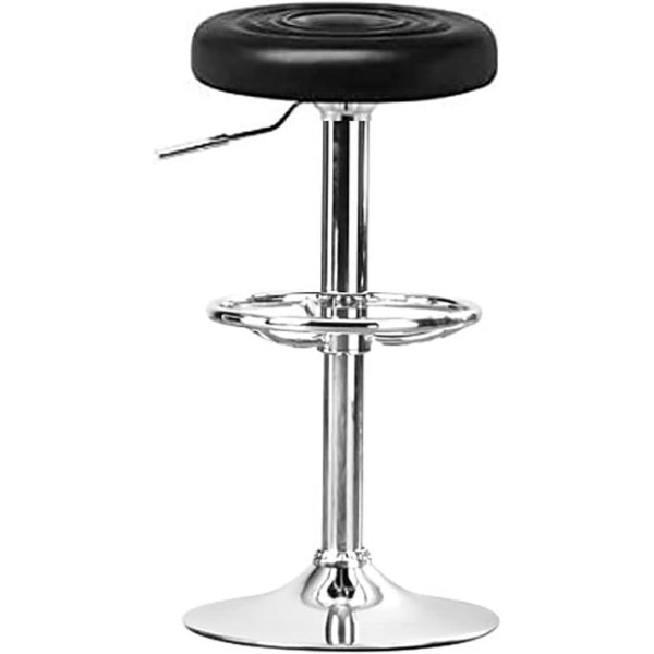 The Adjustable Height Swivel Bar Stool by AWF AL WADI FURNITURE with Cushion lends a cool retro vibe to any game room, basement, bar, kitchen, or shop. The bar stool has a design reminiscent of the days of diners and drive-ins and features a mirror-like polished chrome base, large padded PU Leather 360 degree swivel seat, a built-in footrest, and adjustable seat height.